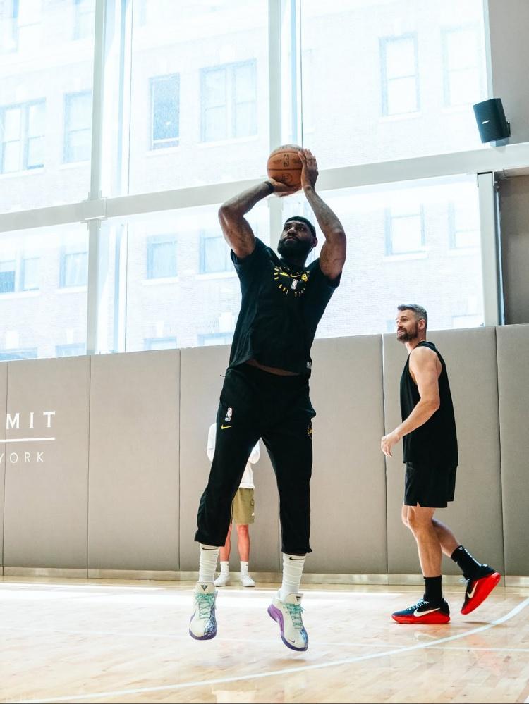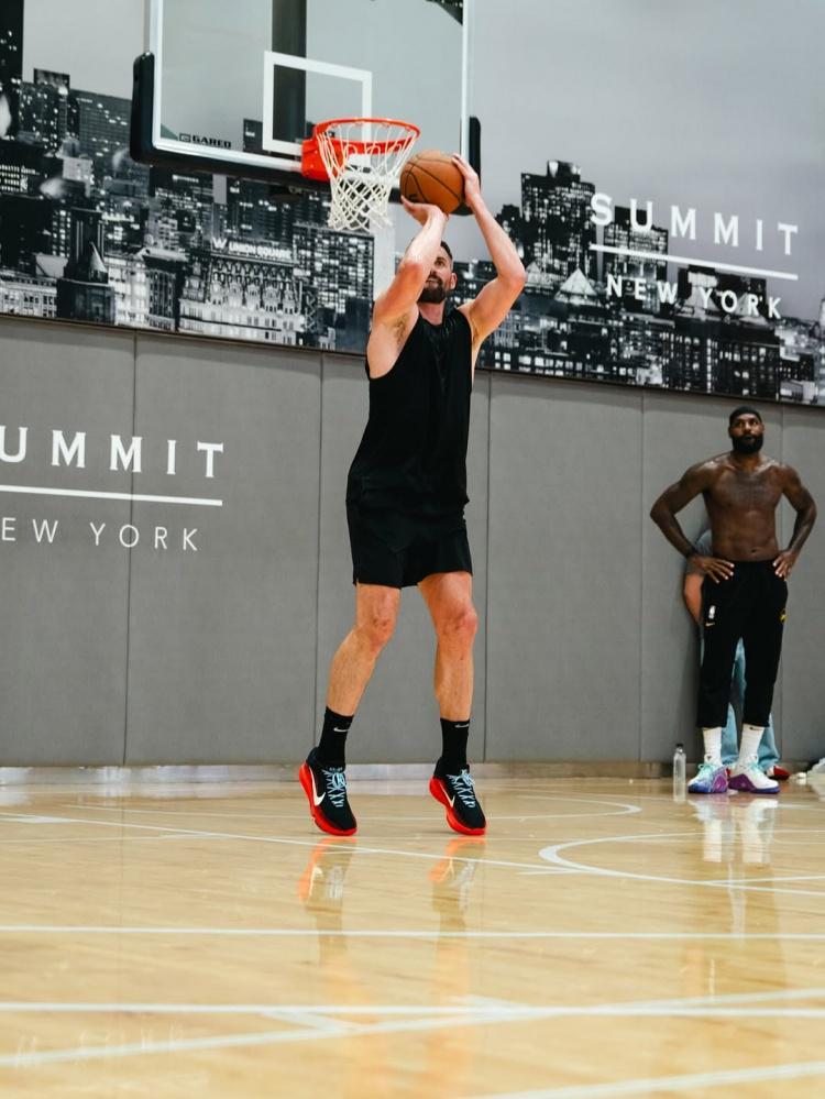直播吧9月4日讯 今日,摄影师Next Subject更新Instagram,发布了一组他在6月拍摄的詹姆斯与乐福在纽约的训练照。